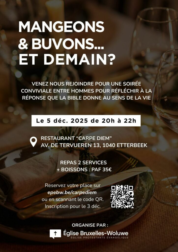 - Mercredi 24 décembre à 17h00 à l’Avenue Slegers 96, 1200 WSL. Au programme : chants de Noël, message biblique et verre de l’amitié.